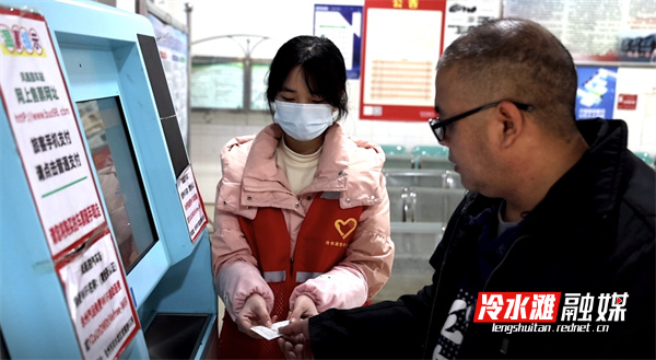 冷水滩区凤凰园汽车西站主要经营冷水滩区内农村线路,也有部分城际车次,志愿者们服从共青团冷水滩区委的统筹安排,以饱满热情投入服务,协助旅客购票、搬运行李,护航平安春运。