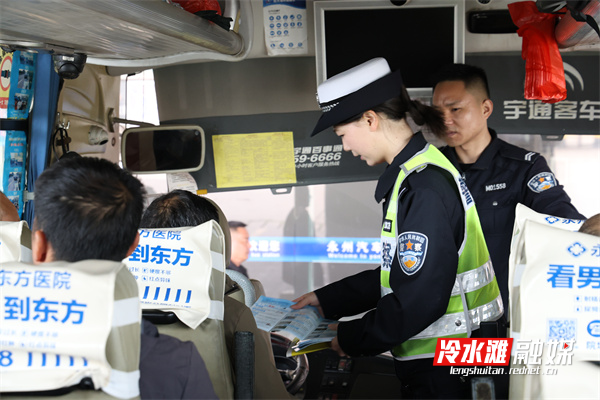走进永州汽车北站,民警正对发车车辆进行逐车检查,从轮胎磨损到灭火器有效期,从安全带完好到车载安全设施,每一个细节都不放过。同时通过展板宣教、发放资料等方式,向旅客普及交通安全知识,筑牢源头安全防线。