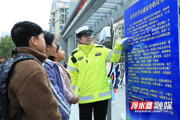 “为确保春季开学期间全市校园周边道路安全的畅通,我们提前部署,全面落实‘护校安园’各项措施,开学首日,在辖区各中小学门口设置‘护学岗’,在保障交通顺畅的同时,通过形式多样的宣传活动,将交通安全的种子播撒进每一个学生心中。”永州市公安局交通管理支队冷水滩大队一级警长邹声延介绍道。
