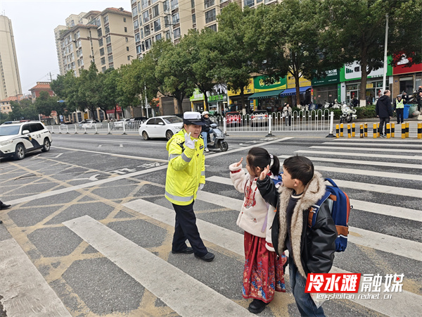 冷水滩融媒3月5日讯(记者 蒋彦斌 李秋燕)近日,永州市公安局交通管理支队冷水滩大队全面启动“护学岗”,并深入校园开展“交通安全第一课”,全力筑牢校园周边交通安全防线。